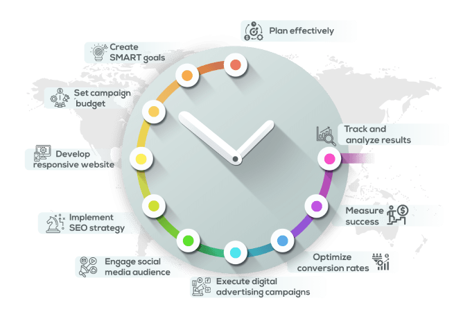 Specific, Measurable, Achievable, Result-focused, and Time-bound—during the planning phase of digital marketing. Ensure goals are realistic considering time and resources. Digital marketing’s result-oriented nature makes quarterly reporting crucial, guiding progress and achieving tangible outcomes. Engaging a digital marketing agency can enhance strategy effectiveness.